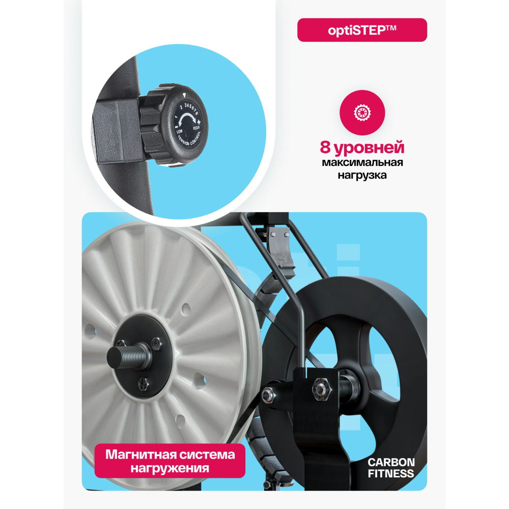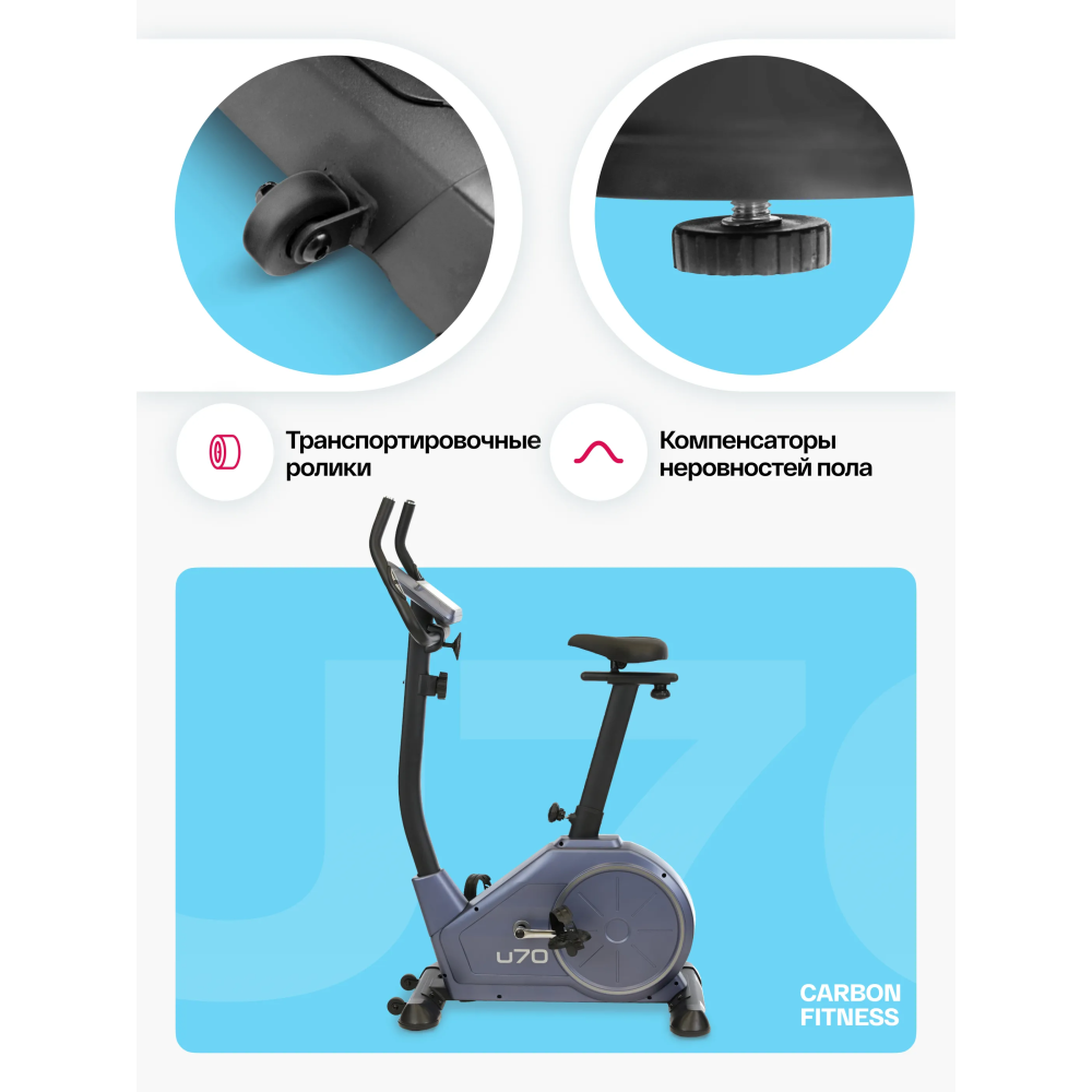 CARBON FITNESS U70 поддерживает пользователей до 140 кг, что делает его доступным для всех членов семьи. Прорезиненные педали с регулируемыми ремешками обеспечивают дополнительную безопасность, а транспортировочные ролики позволяют легко перемещать тренажер по дому.