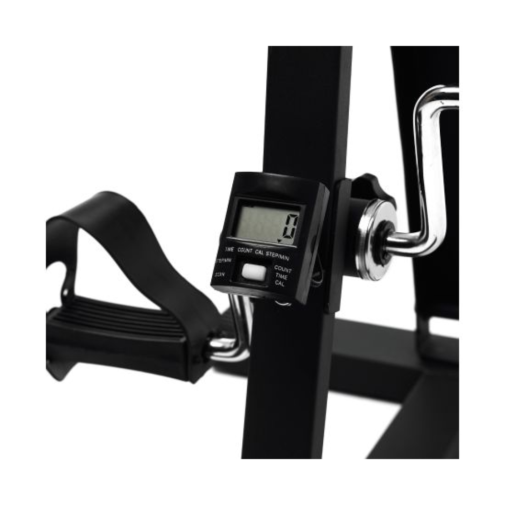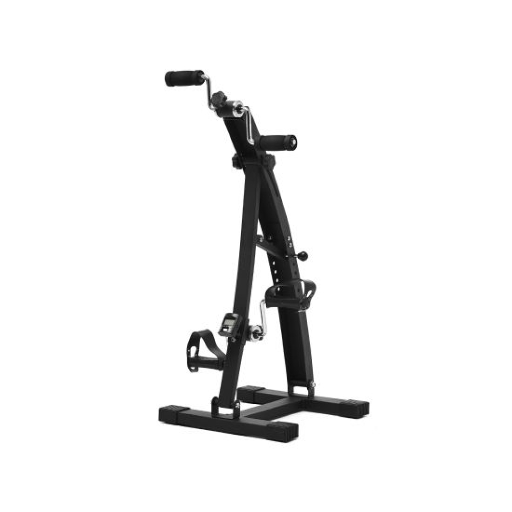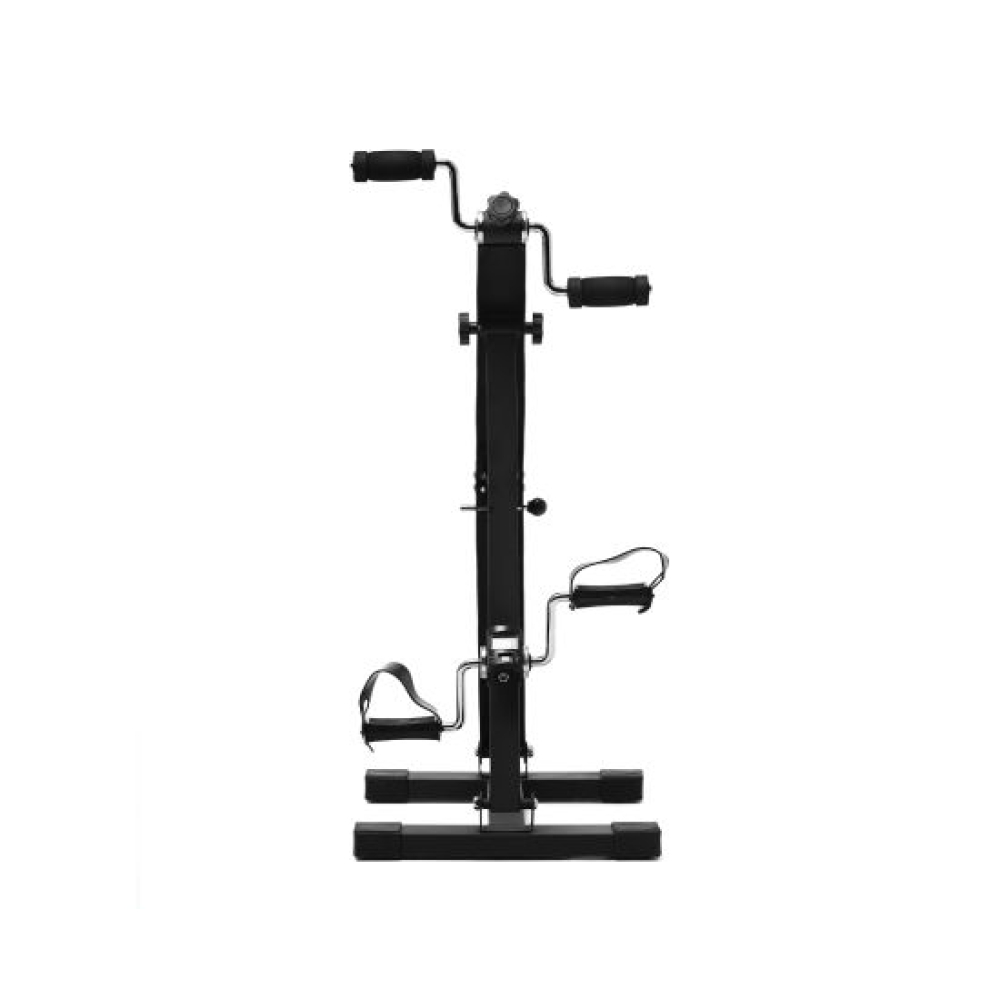 Педальный велотренажер dual bike для рук и ног чёрного цвета. Уникальная конструкция разработана специально для реабилитации, и в дальнейшем адаптирована для людей с различной физической подготовкой.Рекомендуется для занятий пожилым людям, и в качестве реабилитационного оборудования.Занятия на тренажере помогают улучшить кровообращение и координацию движения, сжигается жир, мышцы приводятся в тонус.Стойка велотренажера с регулировкой позволяет установить оптимальную высоту верхних педалей для удобства занятий людям разной комплекции.Педали для ног оборудованы резиновыми ремешками. Занятия на тренажеры выполняются сидя на стуле, кресле и любимом диване.Необходимую нагрузку (сопротивление) педалей можно отрегулировать отдельно для рук и для ног с помощью удобной пластиковой ручки.На тренажере установлен компьютер, отображающий всю необходимую во время тренировки информацию:время, расстояние, сканирование, количество оборотов, общее количество оборотов, калории.Тренажер в основании имеет 4 резиновые ножки, что позволяет полностью исключить его смещение на полу во время занятий.