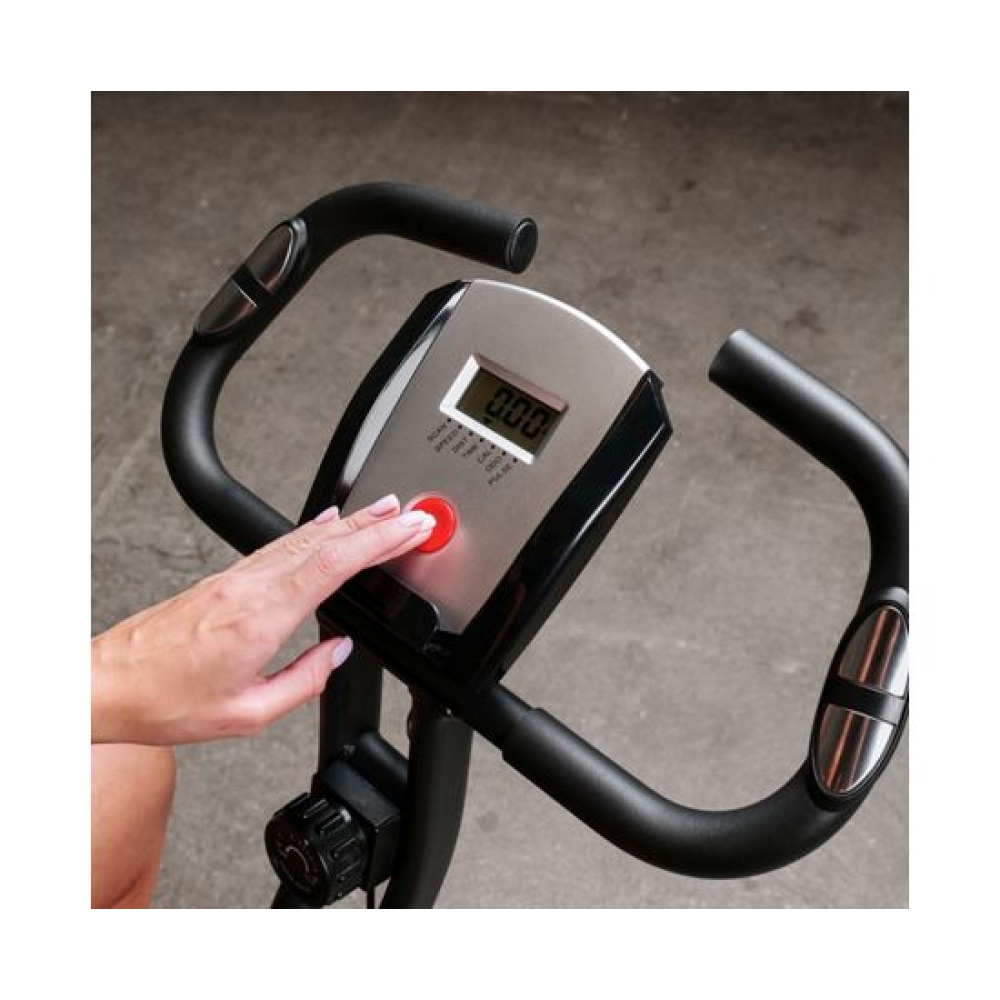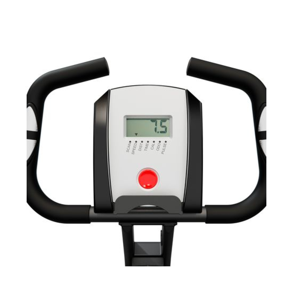 Велотренажер X-Bike DFC ADVENOR серо-белого цвета, рассчитанный на пользователей весом до 110 кг. Такой цвет универсален и подойдет практически для любого интерьера.Нагрузка у тренажера магнитная с использованием инерционного маховика весом 3 кг. Имеется 8 уровней механической регулировки нагрузки, что позволяет пользователям выбирать оптимальный уровень сложности тренировки.Конструкция велотренажера складная, что позволяет легко его хранить и транспортировать. Тренажер оборудован компенсаторами неровностей пола для стабилизации и карманом для хранения мелких предметов.ADVENOR оборудован дисплеем, на котором отображаются основные параметры тренировки: Сканирование, Скорость, Дистанция, Время, Калории, Одометр и Пульс. Пульсовые датчики расположены на поручнях, что позволяет контролировать частоту сердечных сокращений в процессе тренировки.