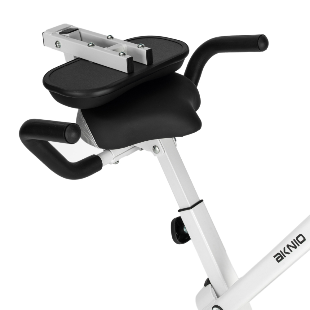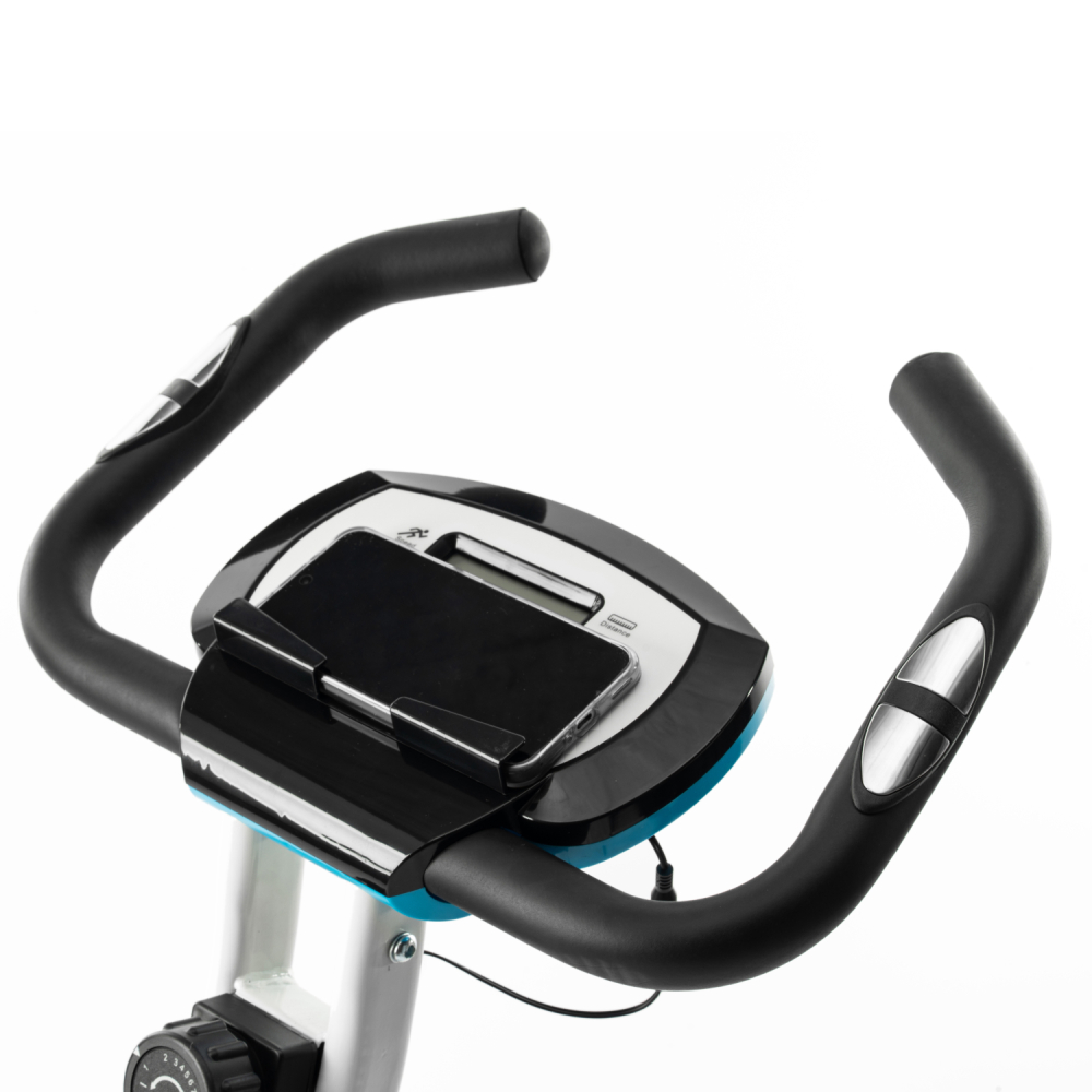 Велотренажер X-Bike DFC AKNIO SQ-2008B — это надёжный и удобный тренажёр для домашних тренировок, который поможет поддерживать отличную физическую форму, сжигать калории и укреплять сердечно-сосудистую систему. Этот велотренажер для дома выдерживает вес пользователя до 110 кг. Модель оснащена магнитной системой нагрузки с инерционным весом маховика 3 кг и механической регулировкой. Магнитная нагрузка отличается плавным ходом, равномерным распределением усилия и минимальным износом деталей, что делает тренировки комфортными и продлевает срок службы тренажёра. Модель предусматривает 8 уровней нагрузки, что позволяет подобрать оптимальную интенсивность как для начинающих, так и для более подготовленных пользователей. Конструкция велотренажёра продумана для максимального комфорта. Расстояние между поручнями — 35 см, что обеспечивает естественное и устойчивое положение рук во время тренировки. Расстояние между поручнями сиденья — 45 см, благодаря чему удобно держаться при посадке и во время занятий. Сиденье регулируется на 7 уровней в диапазоне от 79 до 87 см, поэтому тренажёр легко подстраивается под рост пользователя. Мягкое сиденье со спинкой поддерживает поясницу и снижает нагрузку на спину, что особенно важно при длительных тренировках. Тренажёр оснащён монохромным LCD-дисплеем, который отображает все основные параметры тренировки: время, дистанцию, скорость, калории и пульс. Измерение пульса осуществляется с помощью сенсорных датчиков, встроенных в поручни — это позволяет контролировать интенсивность нагрузки и корректировать тренировку в зависимости от уровня подготовки. Дисплей работает от двух батареек типа AAA (в комплект не входят). Дополнительно предусмотрена подставка под планшет, чтобы можно было смотреть видео или слушать музыку во время занятия. Педали оснащены фиксирующими ремнями, обеспечивая надёжную постановку стопы и безопасность во время занятий. Складная конструкция позволяет компактно хранить тренажёр после использования — модель не занимает много места и отлично подходит даже для небольших помещений. Для удобного перемещения предусмотрены транспортировочные ролики. Велотренажер X-Bike DFC AKNIO SQ-2008B — надёжный и удобный тренажёр для домашних занятий фитнесом. Он обеспечивает устойчивость даже на неровной поверхности благодаря компенсаторам пола, сочетая компактность, функциональность и комфорт при каждой тренировке. Гарантия на детали подверженные естественному износу в процессе эксплуатации — до 6 месяцев с момента установки тренажера при условии регулярного планового ТО. Важно: гарантия не распространяется на преждевременный износ из-за чрезмерной эксплуатации тренажера.