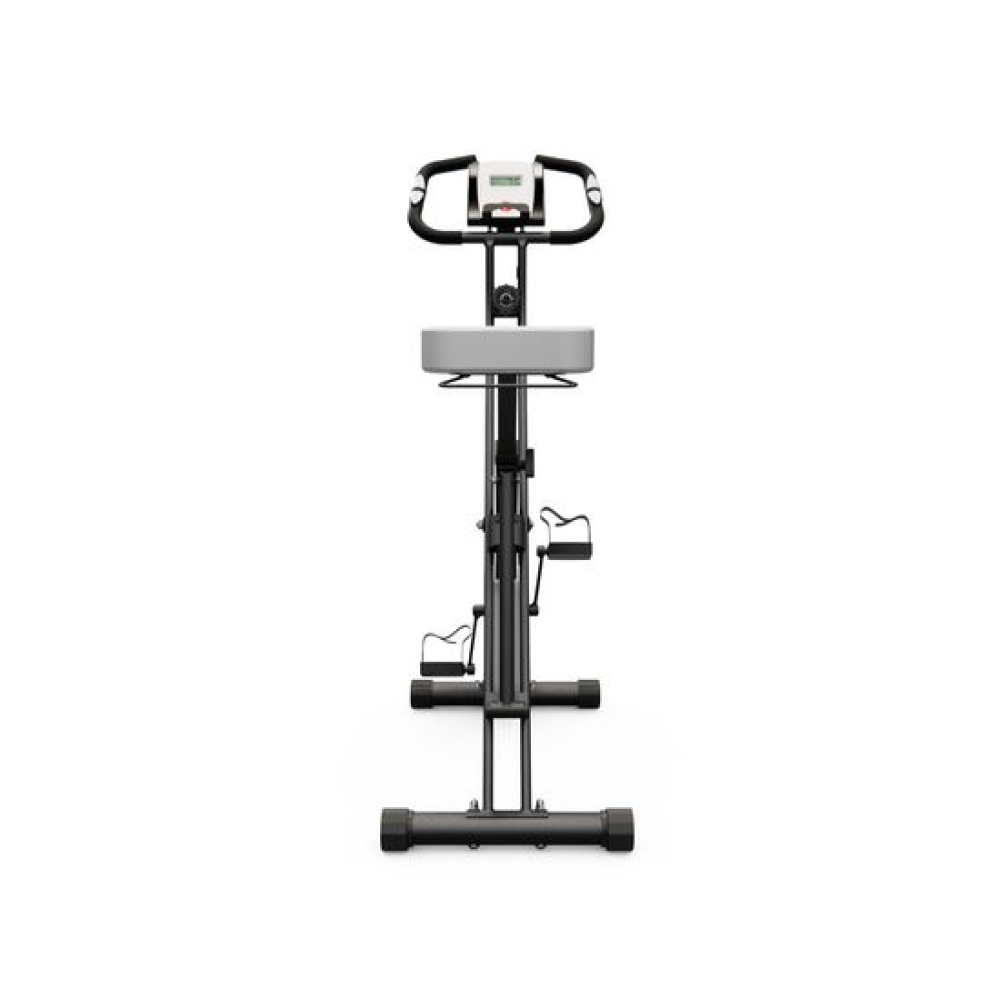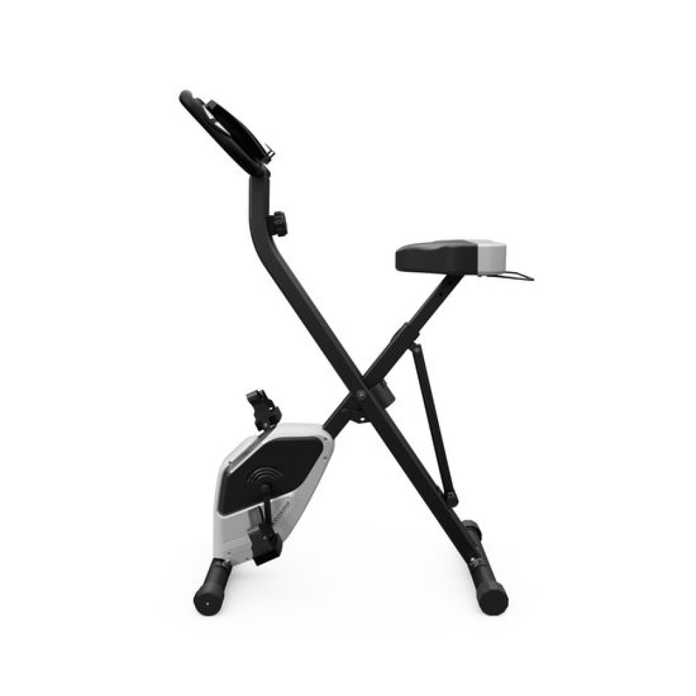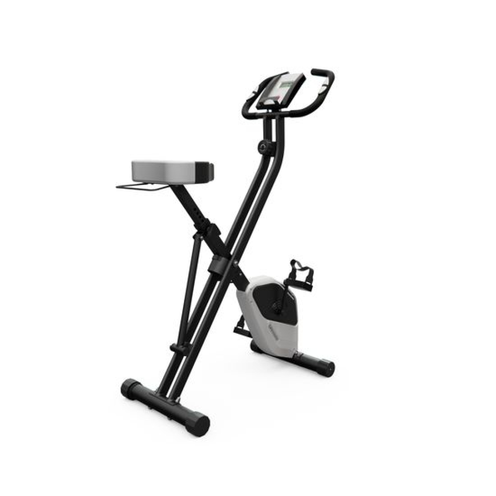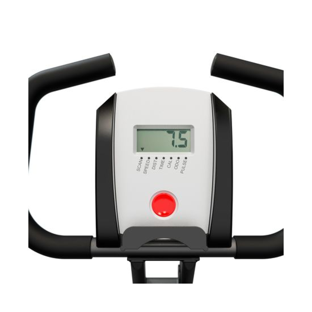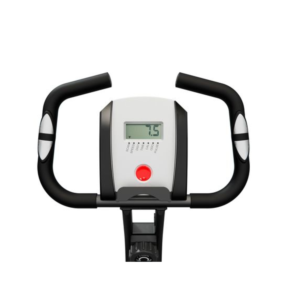 Велотренажер X-Bike DFC DavCreator черно-белого цвета, рассчитанный на пользователей весом до 110 кг. Такой цвет универсален и подойдет практически для любого интерьера.Нагрузка у тренажера магнитная с использованием инерционного маховика весом 3 кг. Имеется 10 уровней механической регулировки нагрузки, что позволяет пользователям выбирать оптимальный уровень сложности тренировки.Конструкция велотренажера складная, что позволяет легко его хранить и транспортировать. Сиденье оснащено держателем для полотенца - это очень удобно для пользователей. Тренажер оборудован компенсаторами неровностей пола для стабилизации и карманом для хранения мелких предметов.Велотренажер оборудован дисплеем, на котором отображаются основные параметры тренировки: сканирование, скорость, дистанцию, время, количество калорий, одометр (общий пробег) и пульс. Пульсовые датчики расположены на поручнях, что позволяет контролировать частоту сердечных сокращений в процессе тренировки.