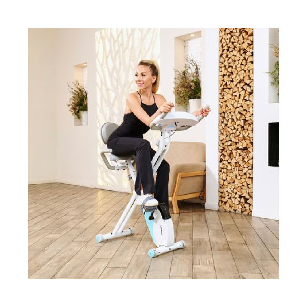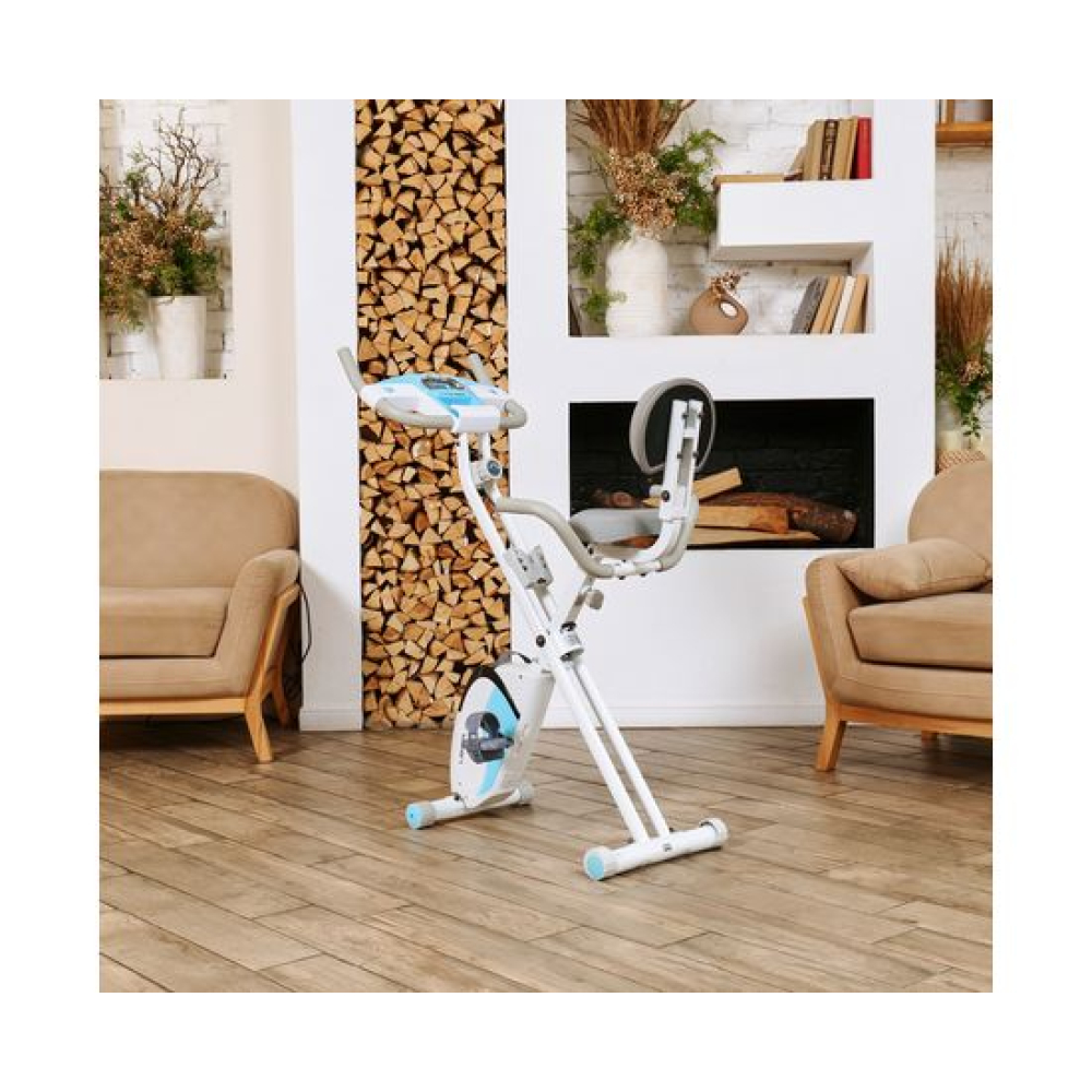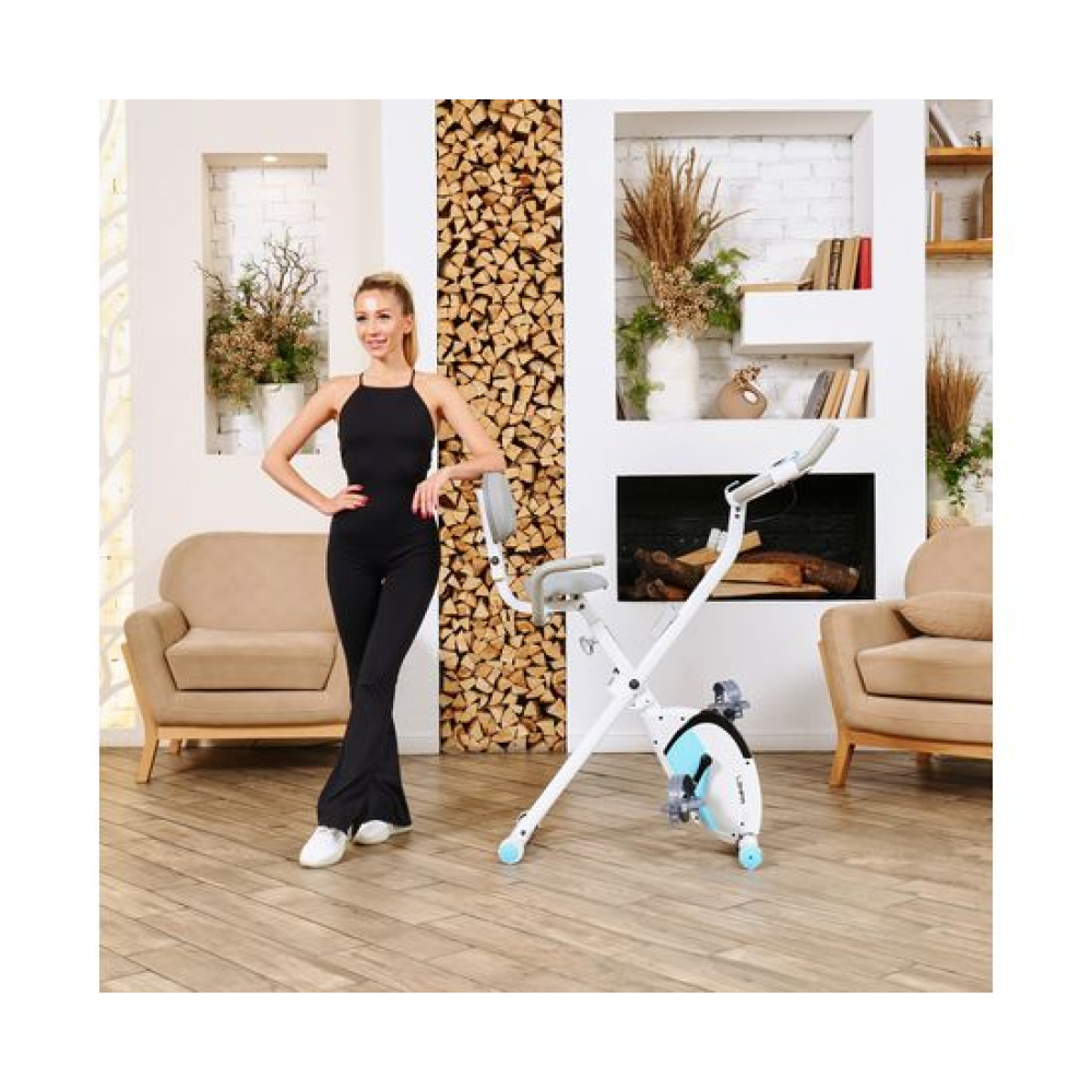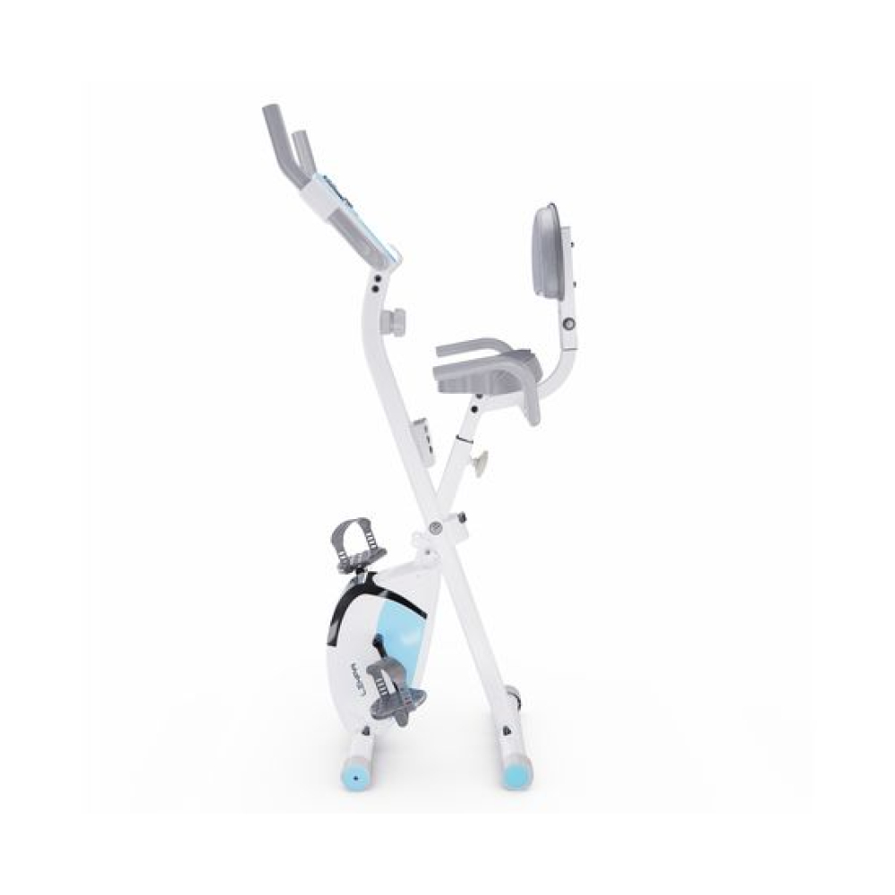 Велотренажёр X-Bike DFC LEXPA YA-150 — это идеальное сочетание функциональности и стиля. Благодаря своему стильному дизайну и удобству использования, он станет прекрасным дополнением вашего дома. Максимальный вес пользователя, который может использовать этот велотренажёр, составляет 100 килограммов. Это делает его идеальным выбором как для новичков, так и для профессионалов.Оснащённый современным дисплеем, LEXPA YA-150 позволяет отслеживать основные показатели тренировки: время, скорость, расстояние, калории и пульс. Инерционный вес маховика составляет 3 килограмма, что обеспечивает плавный и комфортный ход. В комплекте с велотренажёром идёт держатель для телефона, благодаря которому вы сможете наслаждаться любимыми треками или общаться с друзьями во время тренировки.С 16 уровнями нагрузки и магнитной системой сопротивления, вы сможете настроить тренировку под свои индивидуальные потребности и предпочтения. Регулировать нагрузку можно механическим способом, что делает процесс настройки максимально простым и удобным.X-Bike LEXPA имеет компактные размеры в сложенном виде — 23 x 40 x 117 сантиметров, что позволяет легко хранить его даже в небольшом помещении. Транспортировочные ролики и компенсаторы неровности пола обеспечивают стабильность и безопасность во время занятий.