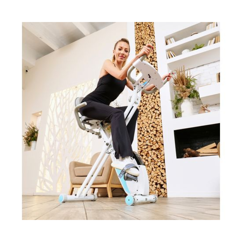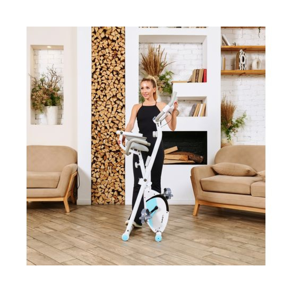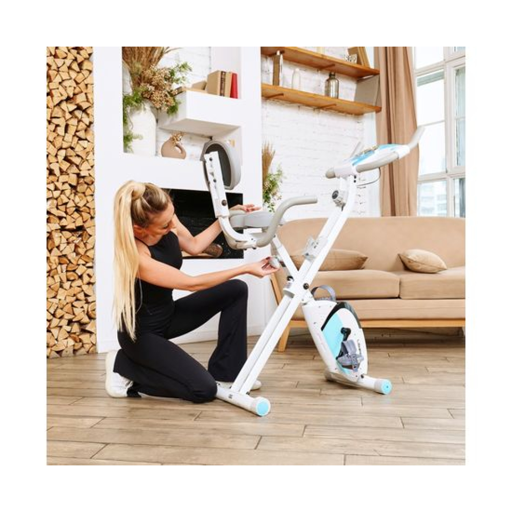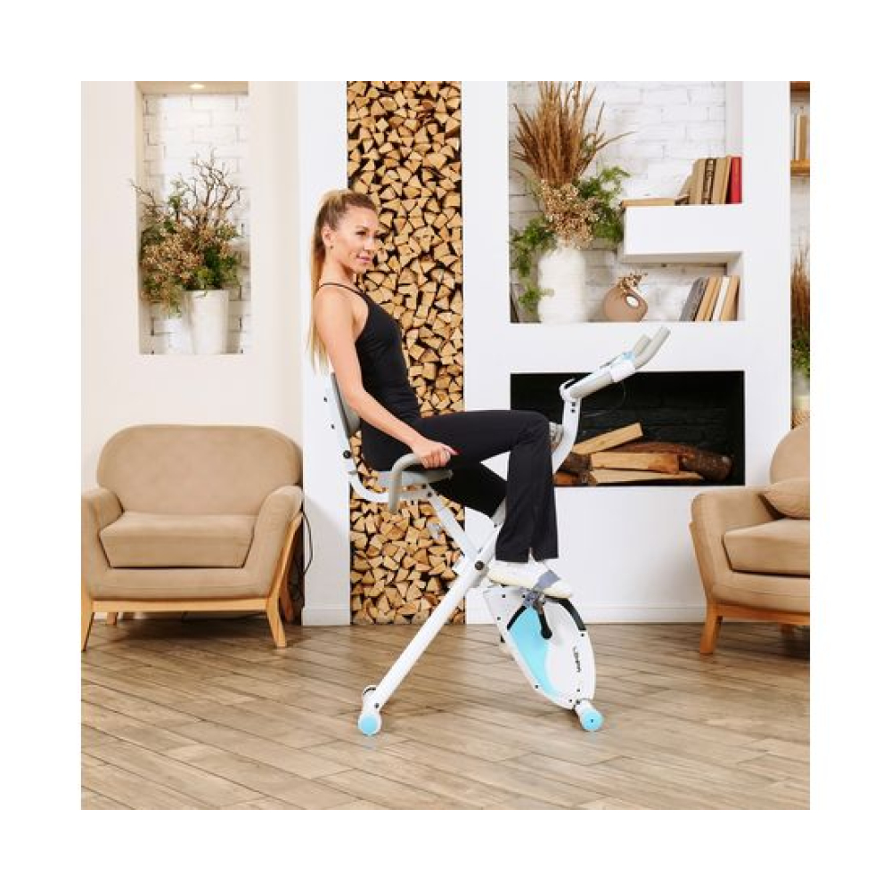 Велотренажёр X-Bike DFC LEXPA YA-150 — это идеальное сочетание функциональности и стиля. Благодаря своему стильному дизайну и удобству использования, он станет прекрасным дополнением вашего дома. Максимальный вес пользователя, который может использовать этот велотренажёр, составляет 100 килограммов. Это делает его идеальным выбором как для новичков, так и для профессионалов.Оснащённый современным дисплеем, LEXPA YA-150 позволяет отслеживать основные показатели тренировки: время, скорость, расстояние, калории и пульс. Инерционный вес маховика составляет 3 килограмма, что обеспечивает плавный и комфортный ход. В комплекте с велотренажёром идёт держатель для телефона, благодаря которому вы сможете наслаждаться любимыми треками или общаться с друзьями во время тренировки.С 16 уровнями нагрузки и магнитной системой сопротивления, вы сможете настроить тренировку под свои индивидуальные потребности и предпочтения. Регулировать нагрузку можно механическим способом, что делает процесс настройки максимально простым и удобным.X-Bike LEXPA имеет компактные размеры в сложенном виде — 23 x 40 x 117 сантиметров, что позволяет легко хранить его даже в небольшом помещении. Транспортировочные ролики и компенсаторы неровности пола обеспечивают стабильность и безопасность во время занятий.