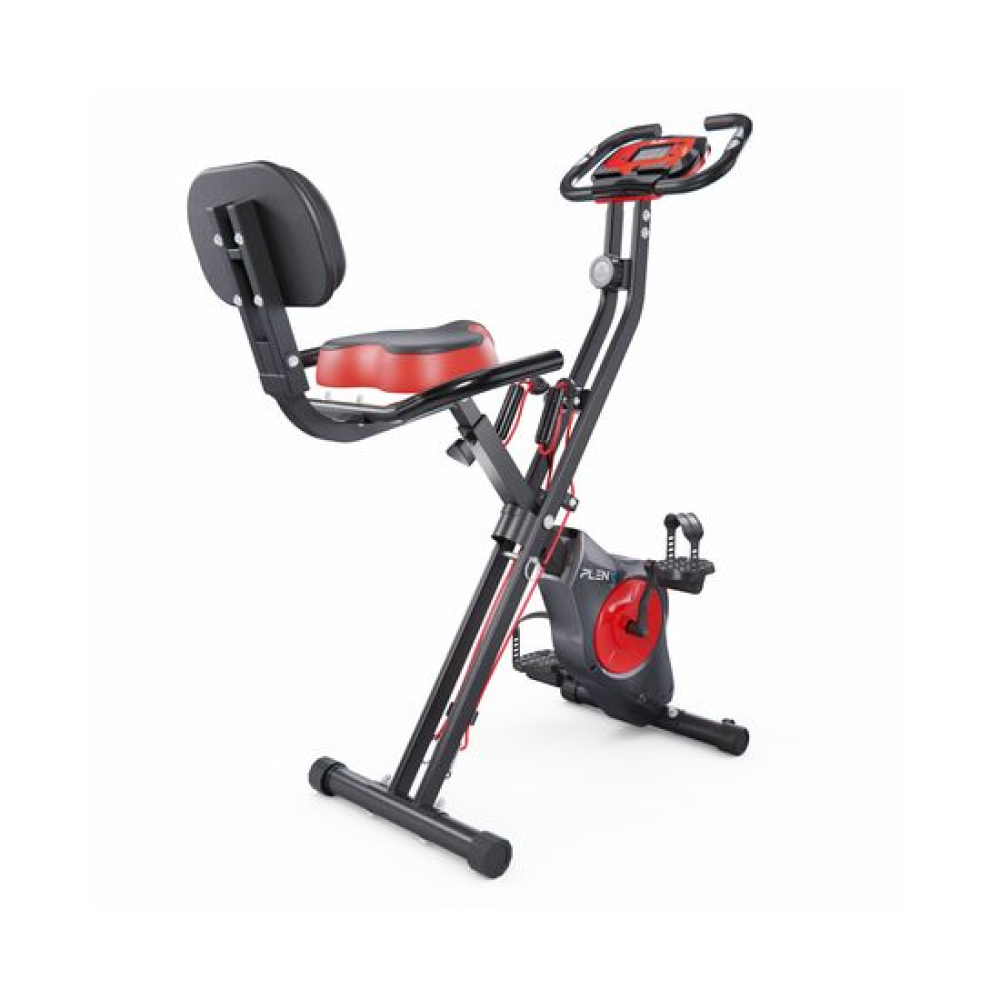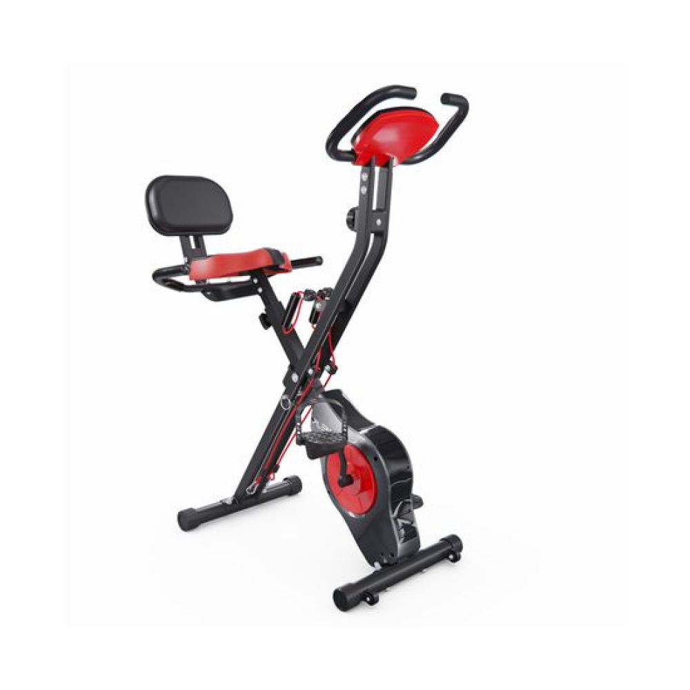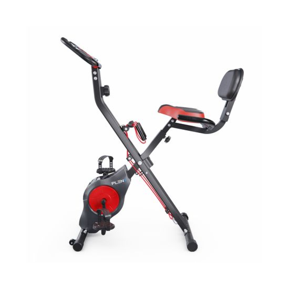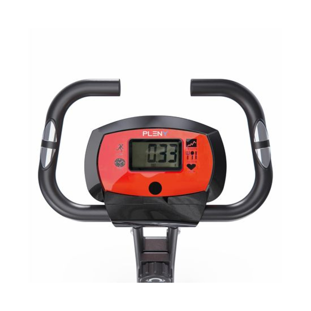 Вертикальный велотренажер с эспандерами DFC X-Bike PLENY CF-917FM — идеальный кардиотренажер для домашних тренировок. Этот велотренажёр представляет собой современный кардиотренажер для ног и рук домашний, который сочетает эффективную аэробную нагрузку с возможностью проработки мышц верхней части тела. Как велотренажер для ног, он обеспечивает качественную нагрузку на мышцы бёдер, ягодиц и икр, а встроенные эспандеры превращают его в полноценный тренажер для ног и рук.Максимальный вес пользователя – 120 кг, что делает тренажер кардио доступной для широкого круга людей. Модель подходит для пользователей с разным уровнем подготовки – от новичков до опытных спортсменов.Тренажер для ног оснащен 16 уровнями нагрузки, которые регулируются механически. Инерционный вес маховика 3 кг. Магнитная система сопротивления обеспечивает плавный и бесшумный ход, что делает тренировки комфортными даже вечером или ранним утром.Встроенный монохромный LCD-дисплей отображает ключевые параметры: скорость, время, дистанцию, пульс, количество сожженных калорий и режим сканирования данных. Работает дисплей от 2-х батареек ААА, идущих в комплекте.Эргономичное сиденье с 8 уровнями регулировки по высоте (от 80 до 90 см от пола) позволяет настроить тренажер под любой рост. Размер сиденья равен 27 × 25 × 7 см, а размер спинки 30 × 16 × 4 см. Педали с противоскользящим покрытием и 4 уровнями фиксации ремней надежно удерживают стопу во время интенсивной тренировки. Датчики пульса на рукоятках помогают контролировать нагрузку без дополнительных устройств.Благодаря складной конструкции тренажер легко хранить даже в небольших помещениях. В сложенном виде его габариты составляют 48 × 58 × 133 см. Встроенные транспортировочные ролики позволяют без усилий перемещать его по комнате, а компенсаторы неровностей пола обеспечивают устойчивость на любой поверхности.В комплекте идут эспандеры длиной 72 см для проработки мышц рук и плеч. Подставка под планшет или смартфон делает тренировки более увлекательными – можно смотреть фильмы, сериалы или онлайн-уроки.Велотренажер домашний DFC X-Bike PLENY CF-917FM – это современный, функциональный и компактный тренажер для домашнего использования. Он поможет поддерживать форму, укреплять мышцы и улучшать общее самочувствие и здоровье!