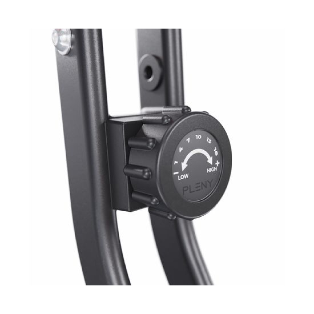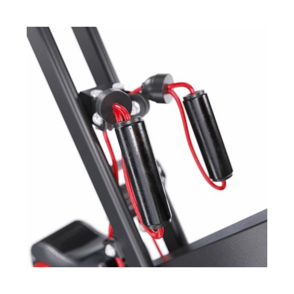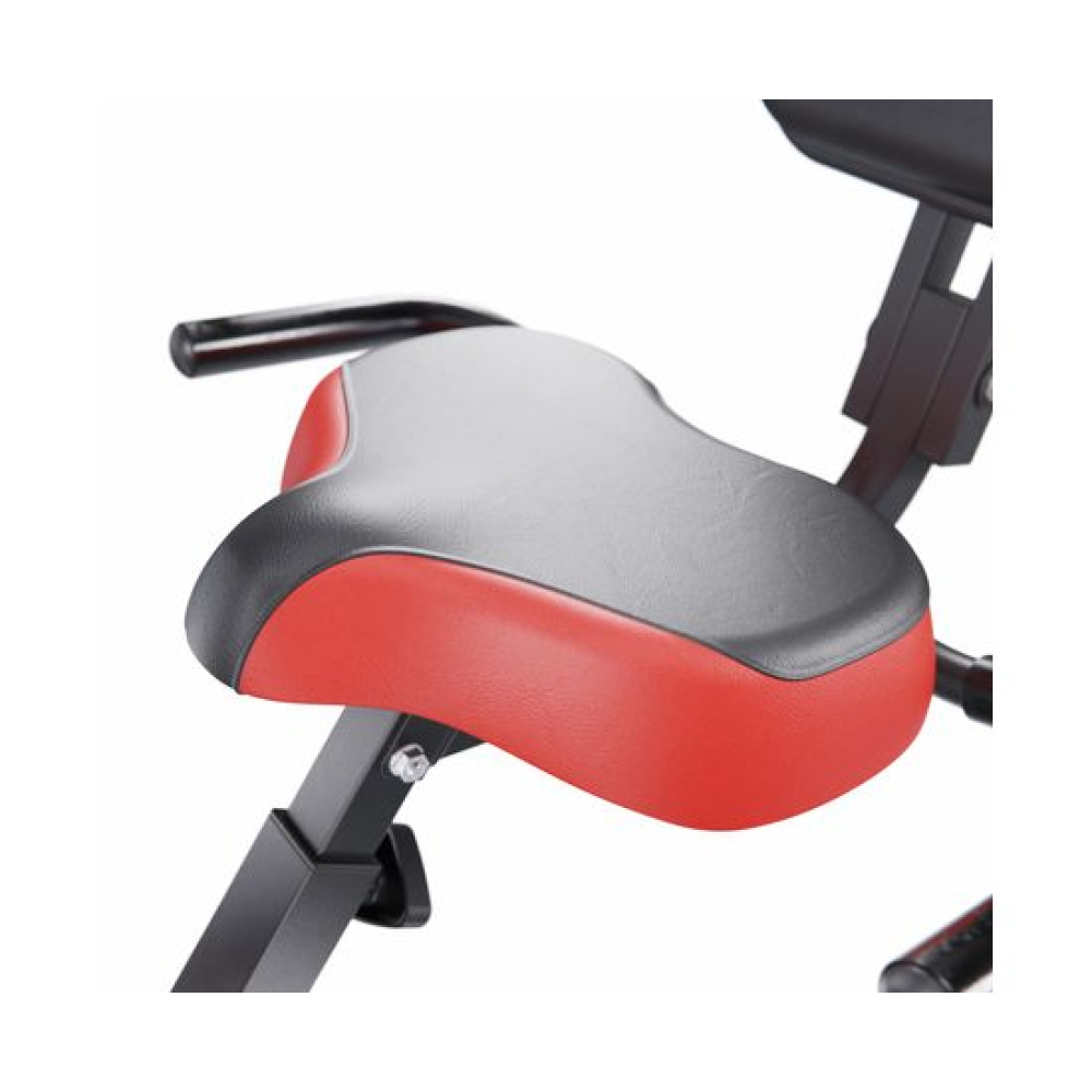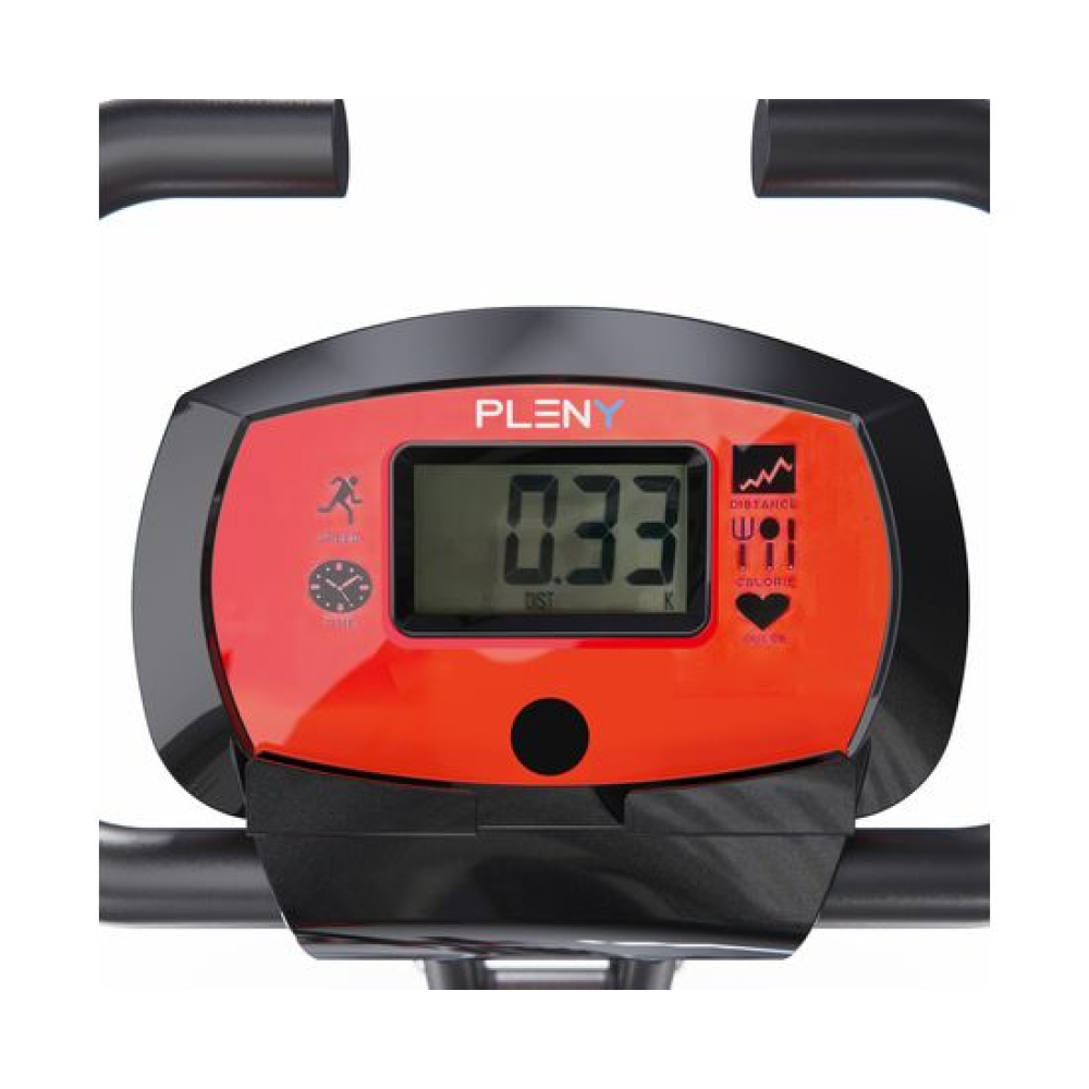 Вертикальный велотренажер с эспандерами DFC X-Bike PLENY CF-917FM — идеальный кардиотренажер для домашних тренировок. Этот велотренажёр представляет собой современный кардиотренажер для ног и рук домашний, который сочетает эффективную аэробную нагрузку с возможностью проработки мышц верхней части тела. Как велотренажер для ног, он обеспечивает качественную нагрузку на мышцы бёдер, ягодиц и икр, а встроенные эспандеры превращают его в полноценный тренажер для ног и рук.Максимальный вес пользователя – 120 кг, что делает тренажер кардио доступной для широкого круга людей. Модель подходит для пользователей с разным уровнем подготовки – от новичков до опытных спортсменов.Тренажер для ног оснащен 16 уровнями нагрузки, которые регулируются механически. Инерционный вес маховика 3 кг. Магнитная система сопротивления обеспечивает плавный и бесшумный ход, что делает тренировки комфортными даже вечером или ранним утром.Встроенный монохромный LCD-дисплей отображает ключевые параметры: скорость, время, дистанцию, пульс, количество сожженных калорий и режим сканирования данных. Работает дисплей от 2-х батареек ААА, идущих в комплекте.Эргономичное сиденье с 8 уровнями регулировки по высоте (от 80 до 90 см от пола) позволяет настроить тренажер под любой рост. Размер сиденья равен 27 × 25 × 7 см, а размер спинки 30 × 16 × 4 см. Педали с противоскользящим покрытием и 4 уровнями фиксации ремней надежно удерживают стопу во время интенсивной тренировки. Датчики пульса на рукоятках помогают контролировать нагрузку без дополнительных устройств.Благодаря складной конструкции тренажер легко хранить даже в небольших помещениях. В сложенном виде его габариты составляют 48 × 58 × 133 см. Встроенные транспортировочные ролики позволяют без усилий перемещать его по комнате, а компенсаторы неровностей пола обеспечивают устойчивость на любой поверхности.В комплекте идут эспандеры длиной 72 см для проработки мышц рук и плеч. Подставка под планшет или смартфон делает тренировки более увлекательными – можно смотреть фильмы, сериалы или онлайн-уроки.Велотренажер домашний DFC X-Bike PLENY CF-917FM – это современный, функциональный и компактный тренажер для домашнего использования. Он поможет поддерживать форму, укреплять мышцы и улучшать общее самочувствие и здоровье!
