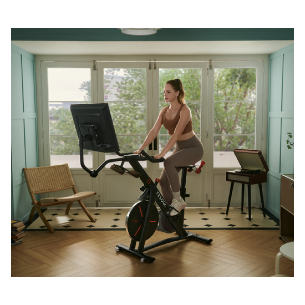 Велотренажёр DFC YESOUL BG1-B-32– ваш пропуск в мир профессиональных кардио-тренировок. Тренажёр подойдёт для пользователей ростом от 150 см, и чей максимальный вес не превышает 120 кг.Экран легко подключается к Wi-Fi, поэтому на него можно транслировать музыку с телефона или планшета и играть в игры. Также имеются встроенные динамики, которые позволяют слушать любимые мелодии во время тренировки. Yesoul G1 MAX Smart поставляется с приложением, с помощью которого легко отслеживать свой прогресс и видеть, сколько калорий вы сожгли во время каждой тренировки, а также создавать тренировочные сессии.Сенсорными функциями экран не обладает, для работы необходимо соединение с приложением на планшете или телефоне, которое необходимо установить на ваше мобильное устройство.Система нагрузки магнитная, регулируется механически с помощью поручня под консолью. Сиденье регулируется по вертикали и горизонтали. Педали с регулируемыми ремешками надёжно фиксируют стопу, исключая возможность соскальзывания во время активных тренировок. Стойка консоли регулируется по высоте, а сама консоль перемещается ближе или дальше от сиденья, а также крутится на 360°.Дисплей 32” с разрешением 1366х768 погрузит вас в атмосферу индивидуальных занятий в спортивном зале. Велотренажер Yesoul – ваш персональный фитнес тренер. С помощью фирменного приложения YESOUL FITNESS вы получите доступ к сотням фитнес-тренировок. Для дополнительной нагрузки предусмотрена пара гантелей весом по 1 кг, которые компактно размещаются на держателе под сиденьем. В конструкции предусмотрено 2 держателя для бутылок и транспортировочные ролики для лёгкого перемещения велотренажёра. Велотренажёр BG1-B-32 можно установить на любой плоскости благодаря компенсаторам неровности пола.