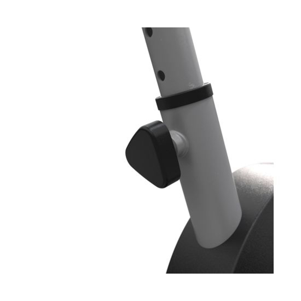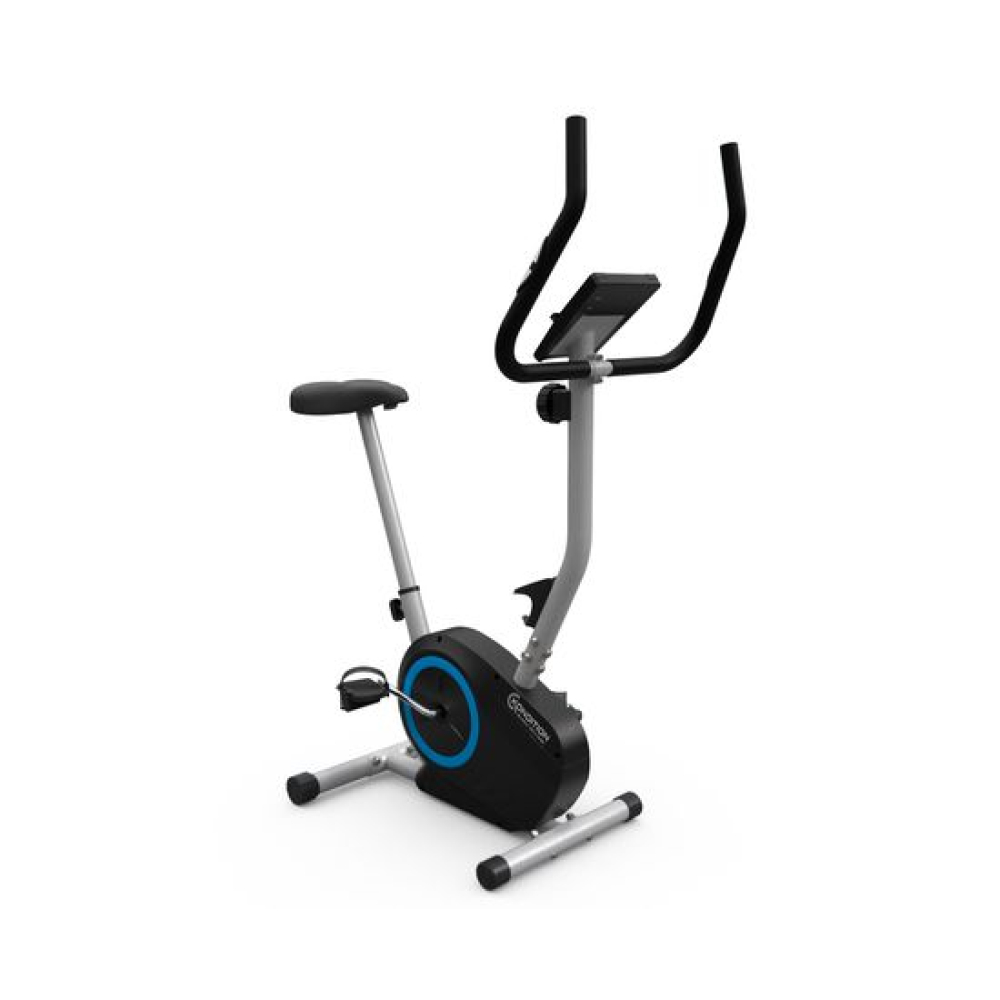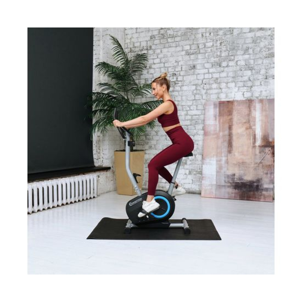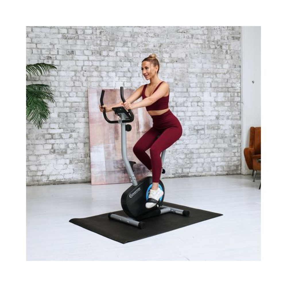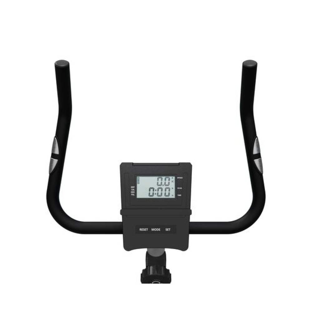 Компактный вертикальный тренажёр DFC Kondition 2309A предназначен для поддержания физической формы и улучшения здоровья. Максимально допустимый вес пользователя до 110 кг.Велотренажер оснащен инерционным маховиком весом 5 кг с возможностью крутить педали в обе стороны. Нагрузка осуществляется с помощью магнитной системы и регулируется механически на 8 уровней.Сиденье велотренажера регулируется по вертикали на 7 уровней от 80 до 94 см от пола, что позволяет настроить его под свой рост. Для отслеживания показаний во время тренировок, на поручнях велотренажера расположены сенсорные датчики пульса. Кроме того, велотренажер оснащен компенсаторами неровности пола, что позволяет стабильно использовать его на любой поверхности. Транспортировочные ролики для быстрого перемещения тренажёра.Помимо выдерживаемого веса спортсмена, данную модель выделяет наличие кармана для бутылки, а также подставки под планшет.Монохромный LCD дисплей велотренажера отображает следующие показатели: скан, скорость, время, калории, пульс и расстояние. Для работы консоли требуются 2 батарейки типа ААА (не входят в комплект).