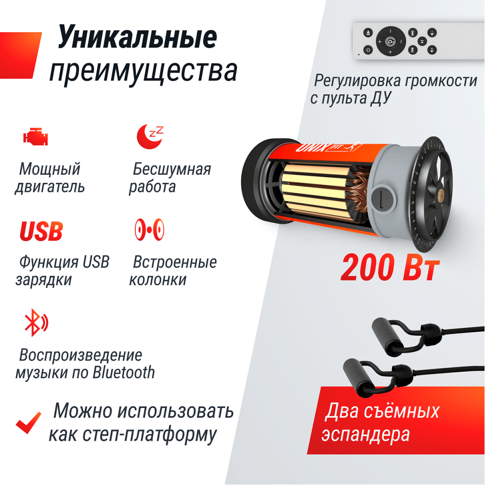 Ищете способ без мучений улучшить физическую форму, сжечь калории и укрепить мышцы? Виброплатформа UNIX Fit Edge 2D — это универсальный тренажер для вас! . . Преимущества виброплатформы:. . 1. Эффективные тренировки: Вибрации активируют до 90% мышц, что позволяет достигать результатов быстрее, чем при классических упражнениях. 2 эспандера в комплекте для дополнительной нагрузки на руки. . . 2. Удобство использования: Компактный и стильный дизайн позволяет легко разместить вибро тренажер в любом уголке вашего дома. Подходит для использования как новичками, так и опытными спортсменами. . . 3. Многофункциональность: Платформа предлагает различные режимы вибрации и интенсивности, а также 3 ручных и 5 предустановленных программ, что позволяет адаптировать тренировки под ваши цели — от похудения до укрепления мышц. Таймер на 10 минут поможет контролировать ваши тренировки. . . 4. Улучшение кровообращения: Регулярные занятия на вибротренажере способствуют улучшению циркуляции крови, что положительно сказывается на общем состоянии здоровья, а также помогает прокачать мышцы ног, бедер и пресса. Эспандеры позволяют задействовать мышцы рук во время занятий на виброплатформе для фитнеса. . . 5. Снижение нагрузки на суставы: Вибрации уменьшают ударную нагрузку на суставы, что делает тренировки безопасными даже для людей с проблемами опорно-двигательного аппарата. Максимальный вес пользователя 150 кг. . . 6. Легкость в использовании: Пульт управления и делает использование платформы простым и удобным. Вы можете менять режимы прямо во время тренировки и отслеживать установленные программы на ЖК дисплее. Тренажером также можно управлять с встроенной панели управления. Возможность подключения по Bluetooth. . . 7. Компактность и мобильность: Легкая конструкция позволяет легко перемещать домашний тренажер и хранить его даже в небольших помещениях. Высота платформы всего 12 см - это позволит хранить ее даже под диваном. . . 8. Режимы работы: . - Режим ожидания: Виброплатформа включена, но программа еще не выбрана.. - Автоматический режим: Выберите одну из 5 встроенных программ тренировок. Каждая программа имеет низкую, среднюю или высокую скорость вибрации.. - Ручной режим: Установите собственную продолжительность тренировки и скорость вибрации.. . 9. Удобный пульт дистанционного управления. Вы сможете установить время тренировки, выбрать нужную вам программу или выставить нужную скорость. Данные будут отображаться на ЖК экране. С пульта можно управлять воспроизведением музыки или громкостью через Bluetooth.. . 10. Противоскользящее покрытие. Резиновый слой на рабочей поверхности не дает проскальзывать по нему кроссовкам.. . 11. Выбор уровня скорости вибрации от 1 до 180. Для тренировок доступно три режима сложности: от начинающего до продвинутого. Также вы можете настроить прибор самостоятельно, выбрав одну из 180 скоростей вибрации. За выставленной программой просто следить через дисплей, расположенный на корпусе.. . .