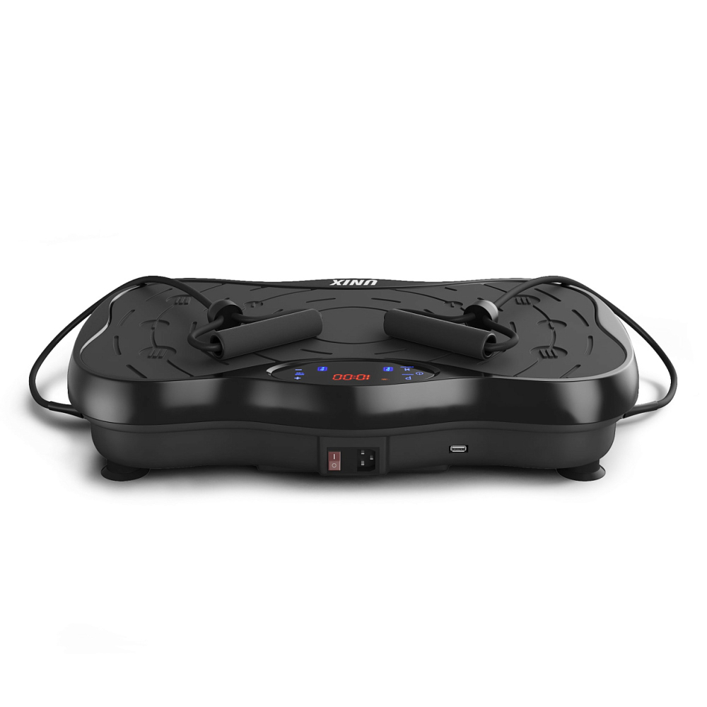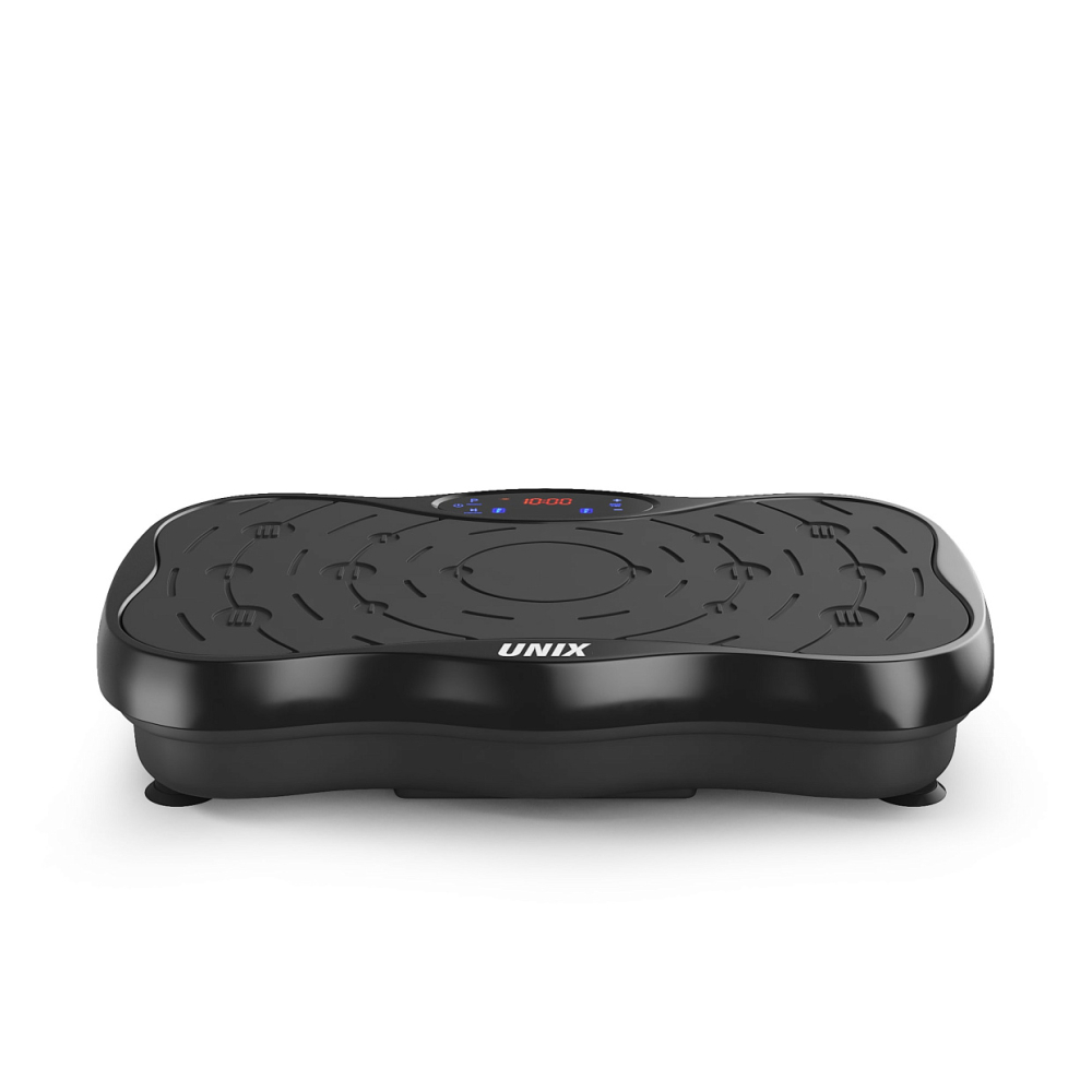 Ищете способ без мучений улучшить физическую форму, сжечь калории и укрепить мышцы? Виброплатформа UNIX Fit Intensive 2D Black — это универсальный тренажер для вас! . . Виброплатформа UNIX Fit Intensive 2D – незаменимый помощник в борьбе за красивую фигуру и хорошее самочувствие. Эта многофункциональная виброплатформа подойдет тем, кто ценит свое время, стремится к физическому здоровью и красоте. Она поможет Вам в короткие сроки привести свое тело в порядок, укрепить мышцы, избавиться от лишнего веса и целлюлита без переутомления и чрезмерных нагрузок, сэкономив Ваше время и деньги на посещении фитнес центров и массажных салонов. . . Виброплатформа - это удобный инструмент, сочетающий в себе функции массажера и тренажера, который задействует практически все группы мышц и позволяет эффективно бороться с негативными последствиями малоподвижного образа жизни, восстановить правильное кровообращение и продлить молодость организма. Вы также можете использовать данную виброплатформу в качестве степ платформы, а комплект из двух эластичных эспандеров, крепящихся к основанию виброплатформы, дает возможность держать в тонусе плечи, мышцы рук, талии, ягодиц, бедер и икр. . Вечерние упражнения на виброплатформе помогут снять усталость и напряжение после рабочего дня. Принцип действия виброплатформы основан на рефлекторном ответе мышц на совершаемые виброплатформой вертикальные вибрационные колебания. За счет вибрации происходит непроизвольное сокращение множества мышц для стабилизации тела — они сокращаются и расслабляются до 50 раз за секунду, что значительно повышает эффективность и интенсивность тренировок. Ставя ноги в различные позиции по отношению к центру виброплатформы, Вы сможете имитировать ходьбу, бег трусцой и бег, оставаясь при этом дома. Для пользователей с начальным уровнем подготовки рекомендуется использовать виброплатформу в течение 10 минут 3 дня в неделю. . . Занятия на виброплатформе помогут Вам:. • Быстрее похудеть. • Избавиться от лишнего веса. • Привести в тонус и укрепить мышцы. • Укрепить кости. • Улучшить работу пищеварительной системы. • Снять мышечное напряжение. • Улучшить качество сна и отдыха. • Контролировать уровень холестерина. • Повысить физическую выносливость. • Ослабить депрессию, снизить уровень стресса, бессонницы. . Преимущества виброплатформы:. . 1. Эффективные тренировки: Вибрации активируют до 90% мышц, что позволяет достигать результатов быстрее, чем при классических упражнениях. 2 эспандера в комплекте для дополнительной нагрузки на руки. . . 2. Удобство использования: Компактный и стильный дизайн позволяет легко разместить вибро тренажер в любом уголке вашего дома. Подходит для использования как новичками, так и опытными спортсменами.. . 3. Многофункциональность: Платформа предлагает различные режимы вибрации и интенсивности, а также 9 предустановленных программ, что позволяет адаптировать тренировки под ваши цели — от похудения до укрепления мышц. Таймер на 10 минут поможет контролировать ваши тренировки. . . 4. Улучшение кровообращения: Регулярные занятия на вибротренажере способствуют улучшению циркуляции крови, что положительно сказывается на общем состоянии здоровья, а также помогает прокачать мышцы ног, бедер и пресса. Возможность подсоединения эспандеров позволяет задействовать мышцы