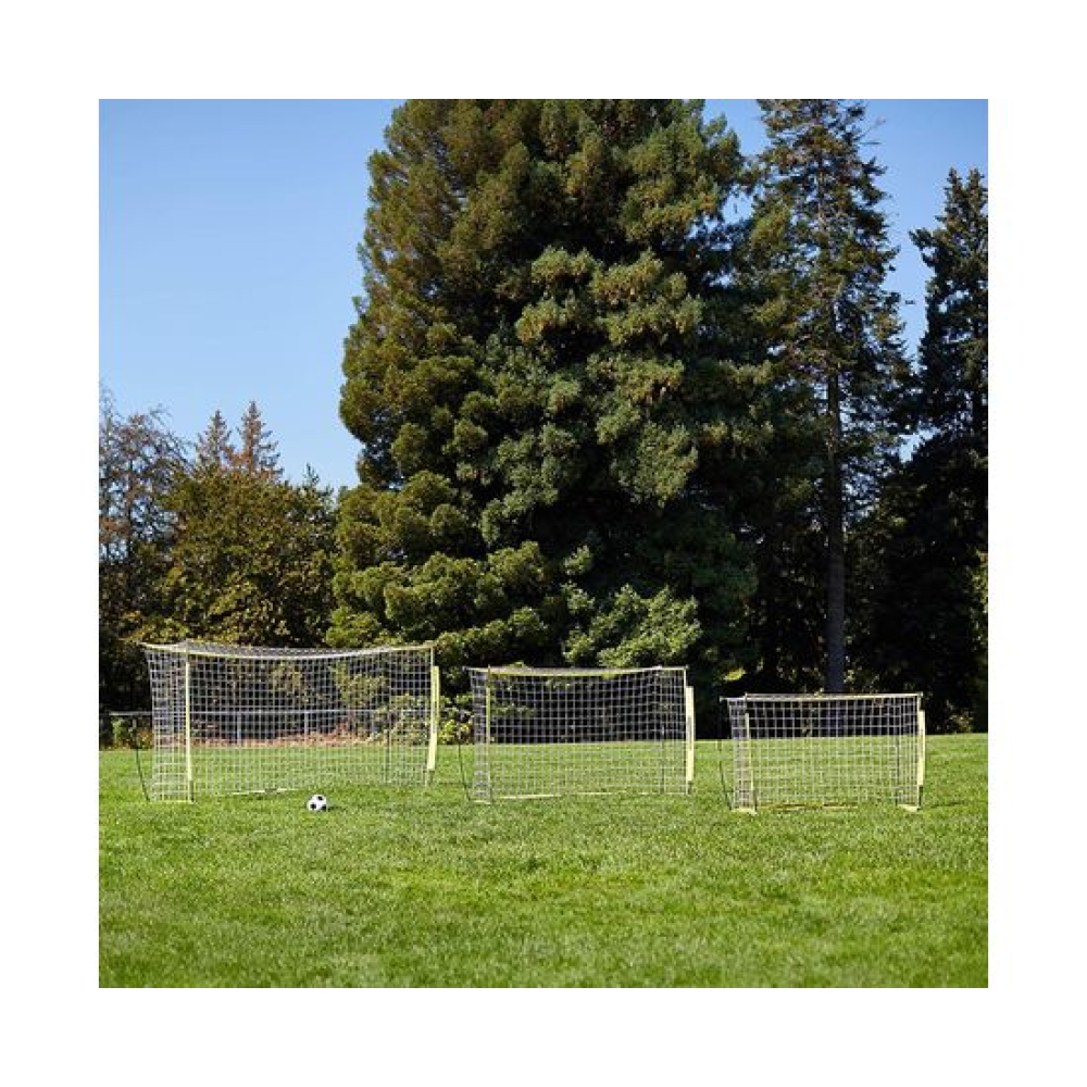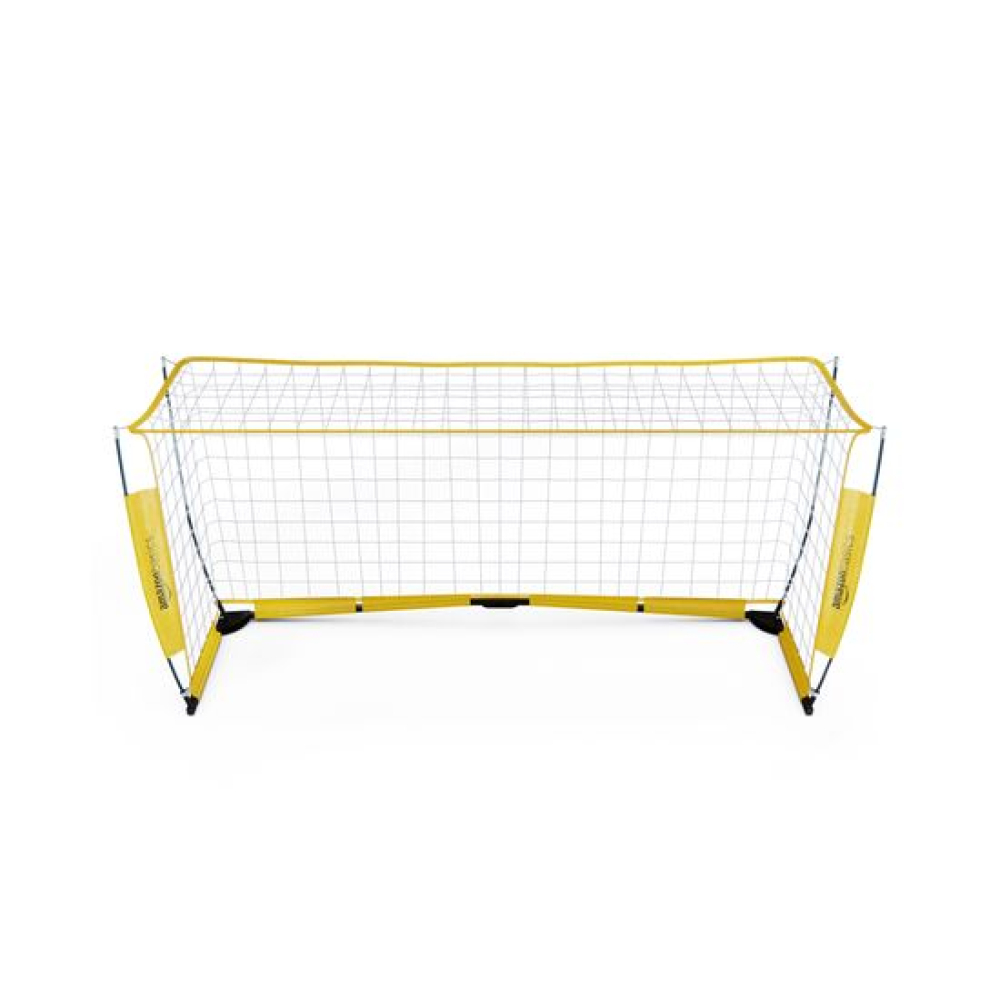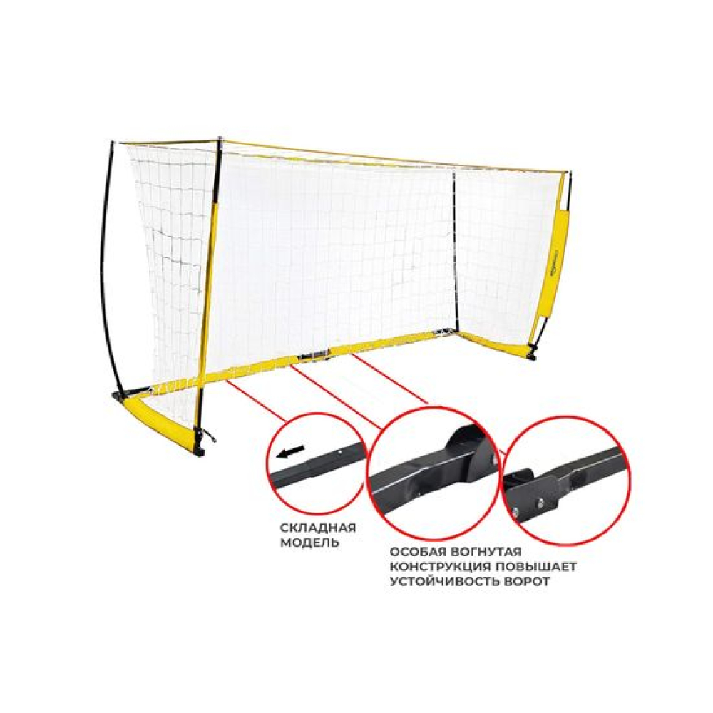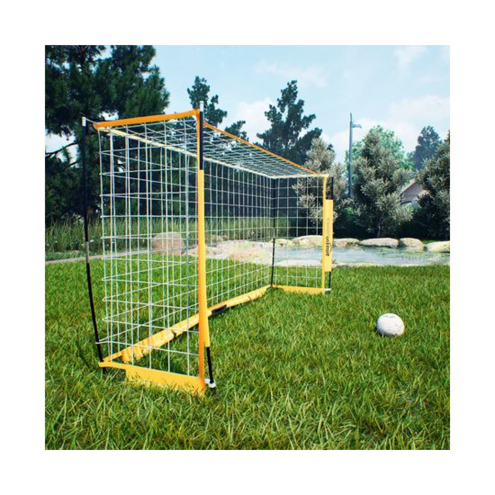 Яркие жёлтые футбольные ворота AmazonBasics M легко установить, они идеально подходят для тренировок на заднем дворе, командных занятий и соревнований на игровых полях. Эти ворота удобны для игроков любого возраста и уровня подготовки, позволяя наслаждаться тренировками и дружескими матчами. Особая вогнутая конструкция направляющих элементов повышает устойчивость ворот.Прочная рама и сетка изготовлены из высококачественных материалов, таких как стекловолокно и сталь, обеспечивая надёжность и долговечность конструкции. Традиционная прямоугольная форма отверстий и гибкие стойки гарантируют стабильность и упругость ворот. Двухслойная сетка обладает высокой прочностью, выдерживая сильные удары.Быстрая установка без использования инструментов облегчает процесс сборки и позволяет легко менять местоположение ворот. Металлические колышки в комплекте обеспечивают надёжное крепление на выбранной площадке.Портативный дизайн делает футбольные ворота удобными для транспортировки от заднего двора до футбольного поля. Прочная сумка для переноски надёжно хранит все детали и облегчает перемещение ворот.
