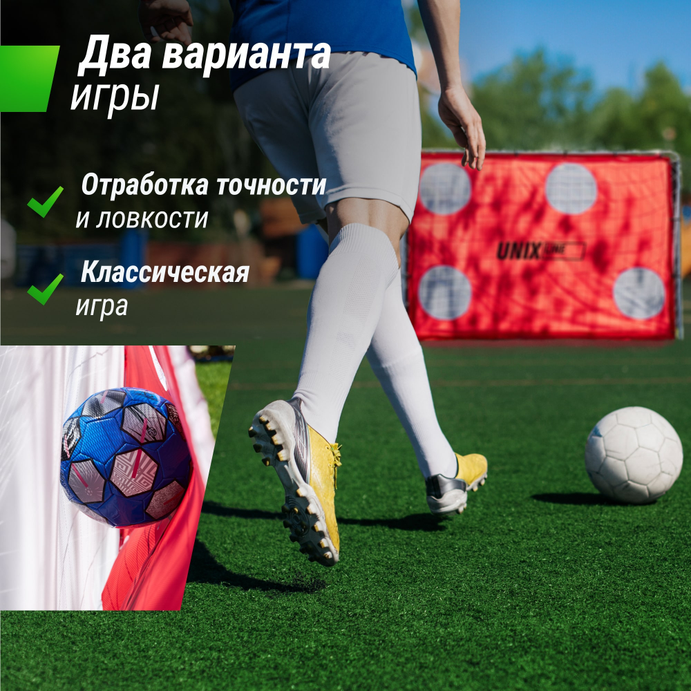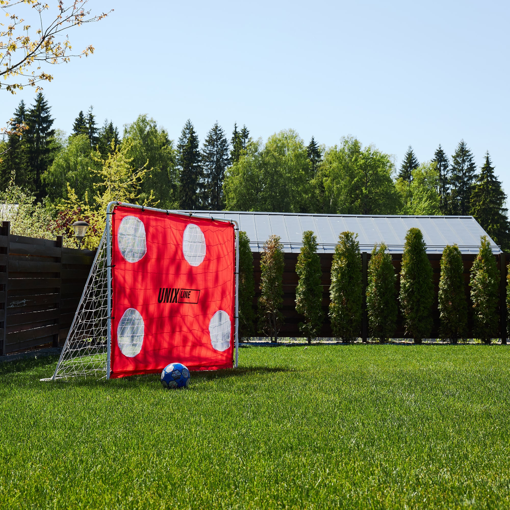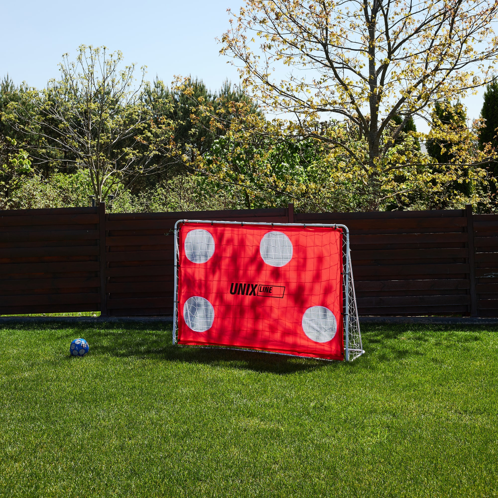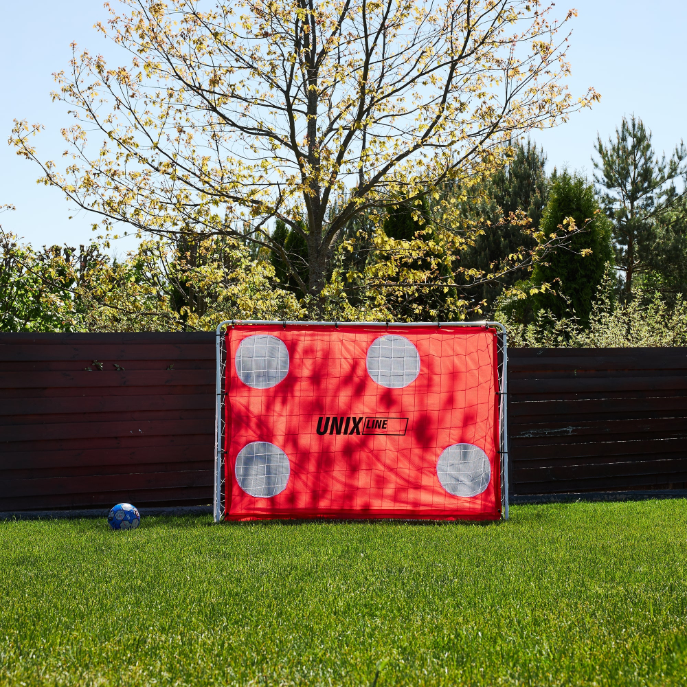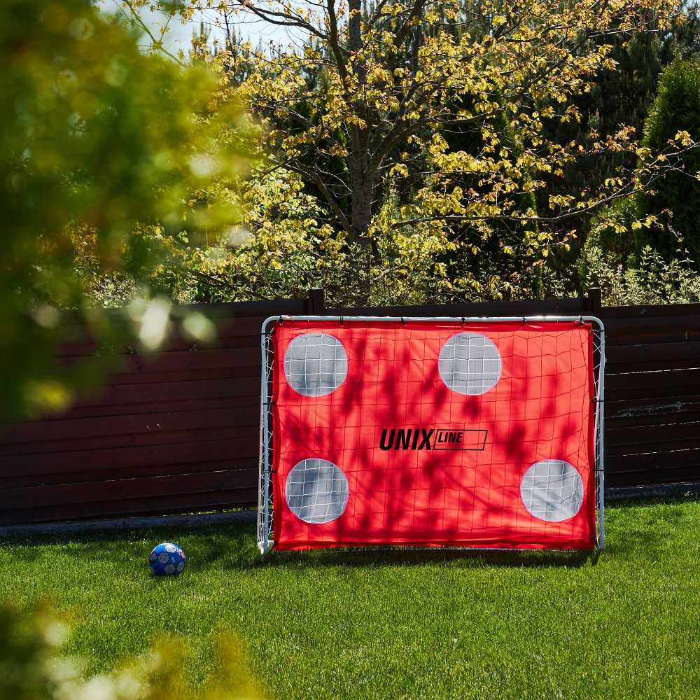 Футбольные ворота UNIX Line станут незаменимым дополнением для всех любителей футбола! Переносные футбольные ворота сочетают в себе легкость и прочность, обеспечивая непревзойденное качество и удобство при использовании. Размер: 217 x 78 x 153 см. Футбольные ворота для улицы обладают прочной стальной конструкцией, надежно стоят на земле и не заваливаются от ударов мяча! Главное преимущество ворот в том, что для них не нужно скрупулезно выбирать место для стационарной установки. Вы всегда можете передвинуть их на новое место. Такие ворота станут отличным дополнением для игры в футбол на даче или во дворе частного дома. Если вы не обладаете большим пространством, после игры ворота можно перенести к забору и снова освободить место. Ворота дополнительно оснащены щитком с мишенями. С помощью тренировочных мишеней можно отрабатывать точность ударов и тогда обычная игра превращается в настоящую тренировку! Лаконичная конструкция металлических футбольных ворот делает их легкими в сборке. Переносные футбольные ворота превратят обычную игру в настоящий футбольный матч! Проводите время за активной игрой с друзьями или детьми и создавайте яркие воспоминания! Больше не нужно придумывать импровизированные ворота и сооружать их из подручных средств. Позвольте себе погрузиться в атмосферу настоящего футбольного азарта с качественными футбольными воротами UNIX Line!