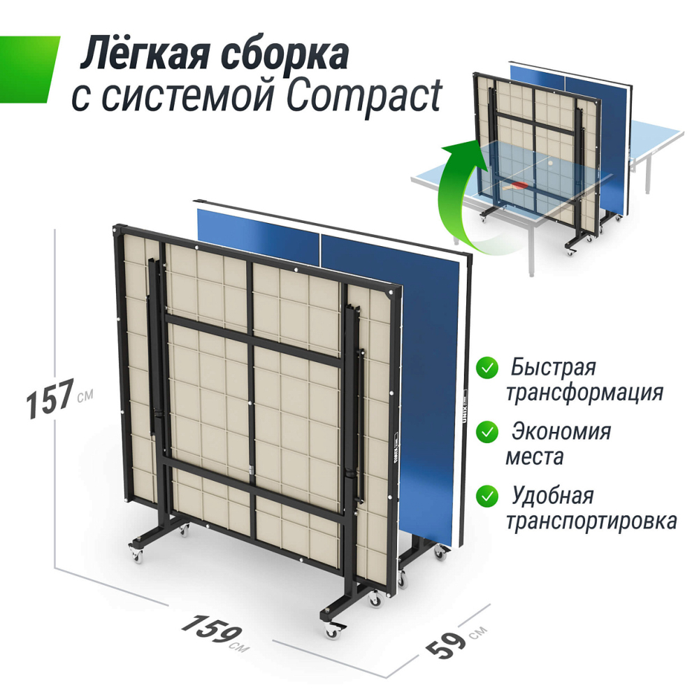 | Размер в рабочем состоянии, см. | 274 х 152,5 х 76 (стандарт ITTF) |