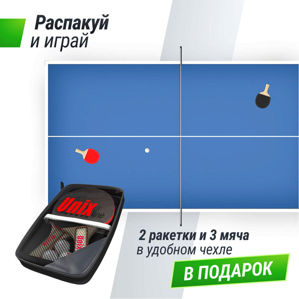 | Комплектация теннисного стола | сетка нейлон, 2 ракетки, 3 шарика в сумке |