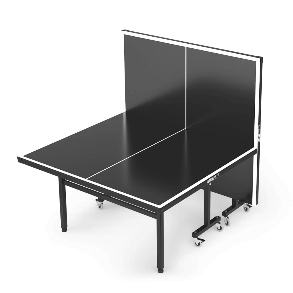 Всепогодный стол для настольного тенниса UNIX Line Outdoor 14mm разработан специально для использования на площадках под открытым небом. Теннисный стол состоит из двух независимых половинок с технологией складывания Compact. Удобное складывание и жесткая фиксация столешницы позволяют играть одному. Столешница всепогодного стола UNIX Line изготовлена из SMС - панели с антибликовым покрытием и выдерживает многочисленные нагрузки, мм обладает хорошей устойчивостью к ударам, воздействию окружающей среды, влаге и температурным перепадам. Она не является горючим материалом, и за счет высокой плотности и толщины столешницы (14 мм) обеспечивает великолепный отскок мяча во время игры. Металлическая рама теннисного стола UNIX Line имеет толщину стали 1,4 мм, размеры профилей составляют 20х40 и 40х40 мм. Благодаря таким характеристикам конструкции, теннисный стол сохраняет жесткость и устойчивость на любых покрытиях. Опоры теннисного стола оборудованы компенсаторами неровности. Для комфортного перемещения теннисный стол имеет 8 прорезиненных колес Ø75 мм с подшипниками. Все колеса маневровые и обладают высокой износостойкостью, 4 из них оборудованы фиксаторами. Сетка из нейлона с надежными фиксаторами, а также набор для игры в настольный теннис: 2 ракетки, 3 шарика в сумке, поставляются в комплекте со столом. Укрывной универсальный чехол для стола не входит в комплект и приобретается отдельно. Защищает от мелкого мусора и листвы. .