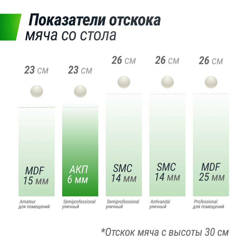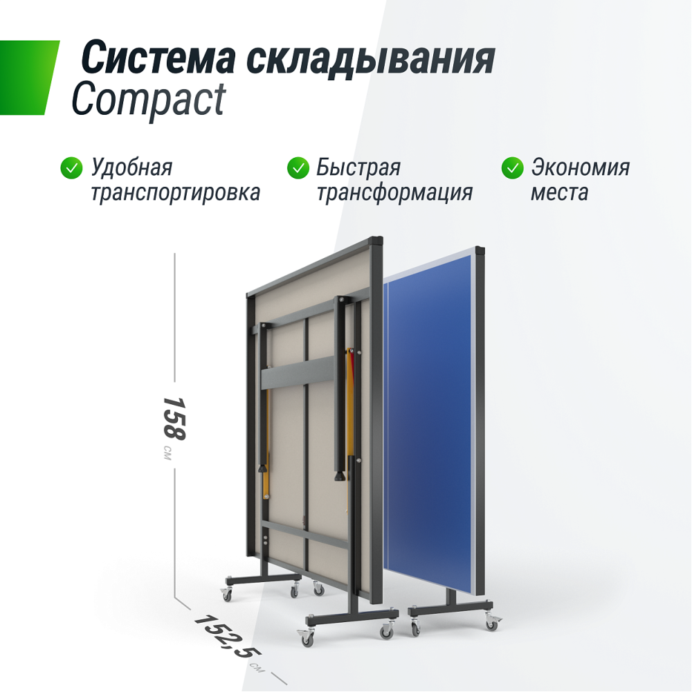 | Размер в рабочем состоянии, см. | 274 х 152,5 х 76 (стандарт ITTF) |