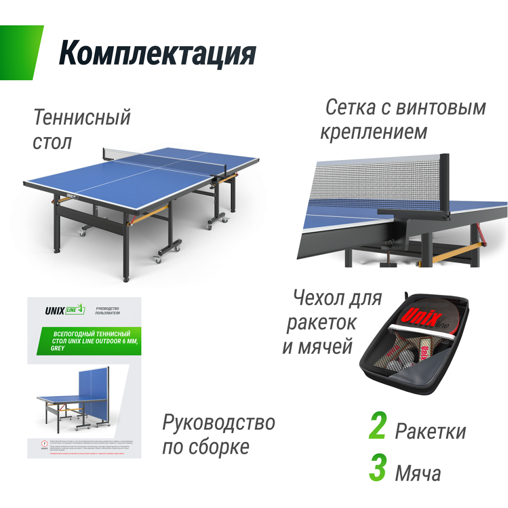 Технические характеристики Всепогодный теннисный стол UNIX Line outdoor 6mm (Blue)